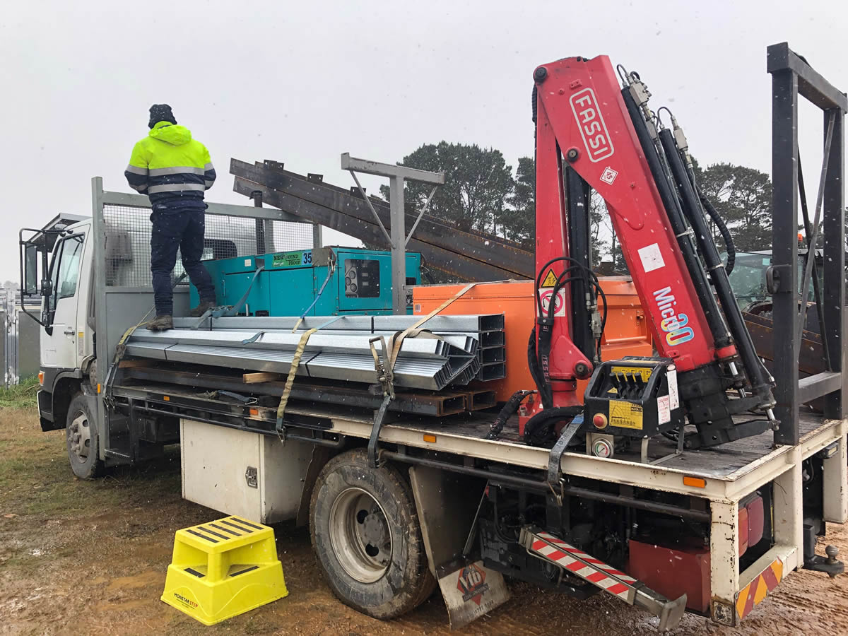 Coresteel Fabrication has a standard medium rigid truck for general site work and deliveries. We also have a larger prime mover with a crane to cater for larger projects.